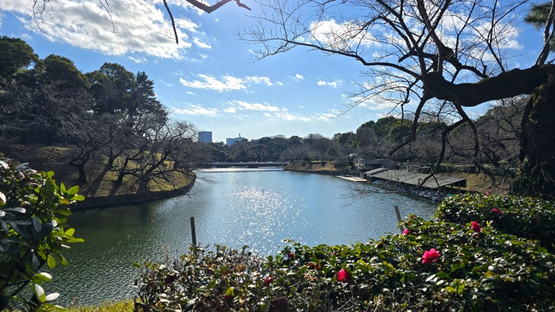 冬枯れの桜並木が水面に影を落とす幻想的な光景や、千鳥ヶ淵戦没者墓苑で見頃を迎える可憐な寒紅梅、そして道沿いを彩るピンク色の椿など、色彩の乏しい季節だからこそ際立つ自然の息吹きが見どころです。