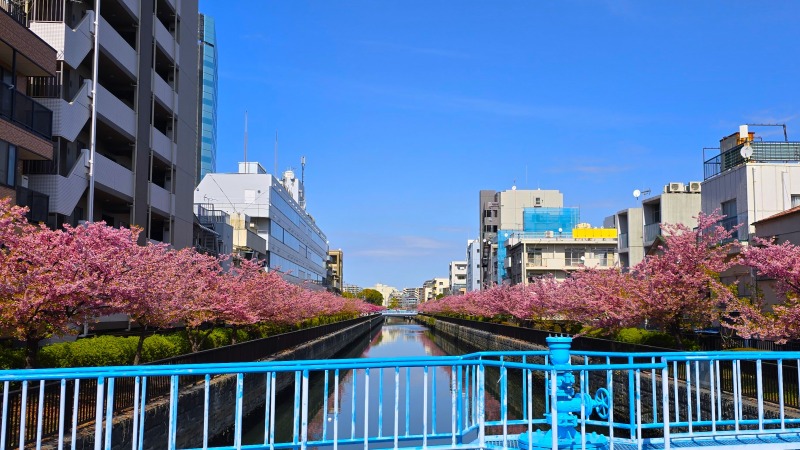 木場公園・大横川の河津桜|スカイツリーを望む絶景とピンクの並木道!3月中旬の見頃レポ